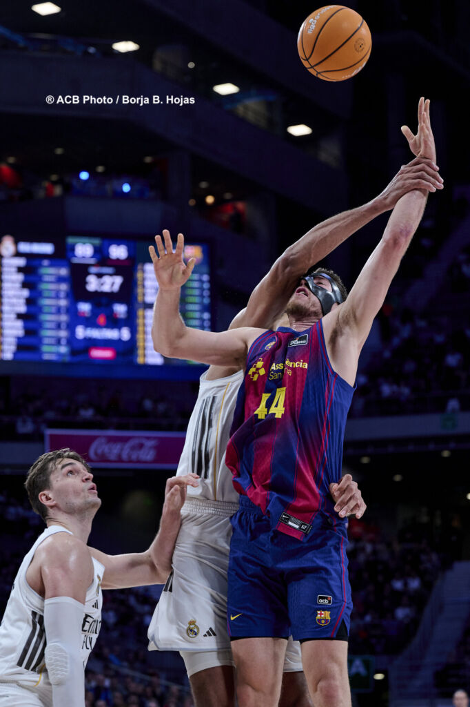 - Otro de los aspectos que bien claro tenían todos como decisivo en el enfrentamiento, era la diferencia en el rebote. El Real Madrid suele dominar en sus enfrentamientos los puntos en la zona (48 a 36 a su favor este domingo) y completando tal dominio en la pintura, también dominar el rebote. Por ahí pasaban gran parte de sus aspiraciones, pero esta vez, no fue así. Xavi Pascual no contaba con Will Clyburn como tercer hombre para un trío interior como contrapeso en el rebote, pero sí que usó y con mucho éxito a Joel Parra (26 minutos en total, 5 más de lo que promedia en liga) para sumar 3 rebotes ofensivos a los 8 que ya se encargaron de capturar tanto Hernangómez como Fall, que estuvieron sobresalientes en este aspecto. La diferencia fue más que notoria: el Barça anotó 18 puntos tras rebote ofensivo, 12 más que los madridistas. Y siguiendo con Parra, añadió réditos en otro aspecto fundamental: el juego en poste bajo. Colección de fintas y pivotes como para sumar 13 puntos, sumado a ese triple contra tabla para enfriar un final en el que los locales lo llevaban a su terreno más candente (se situaron a tan solo 3 puntos del adversario).